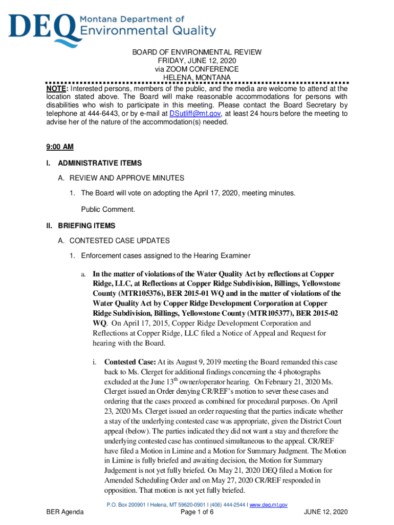 Get the free a. In the matter of violations of the Water Quality Act by reflections at ... - deq mt
