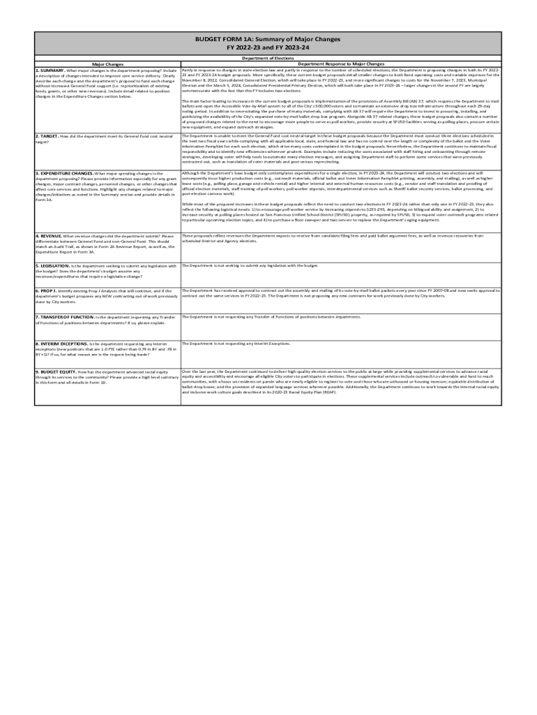 1. SUMMARY. What major changes is the department proposing? Include Partly