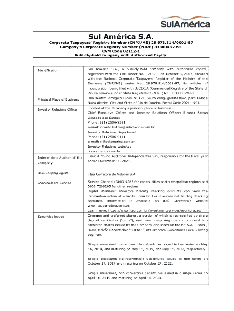 Get the free Sul Amrica SA National Registry of Corporate Taxpayers' ...