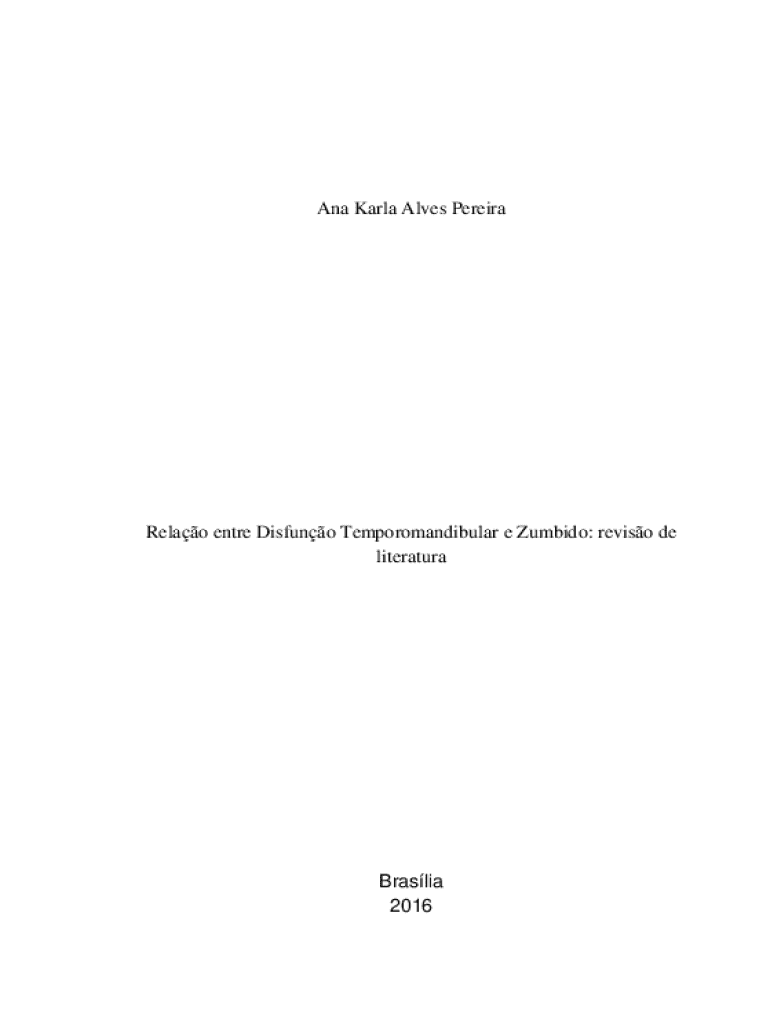 Ana Karla Alves PereiraRelao entre Disfuno Temporomandibular e Zumbido: reviso de literaturaBraslia 2016Ana Karla Alves PereiraRelao entre Disfuno Temporomandibular e Zumbido: reviso de literaturaTrabalho