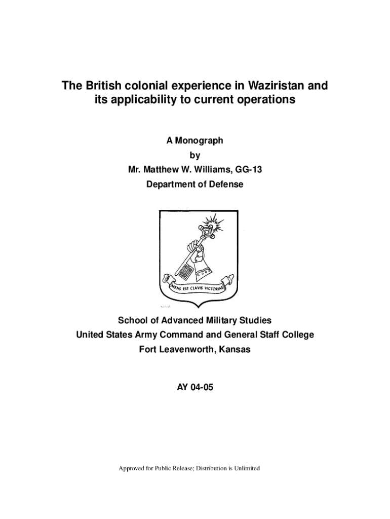Get the free The British colonial experience in Waziristan and its ... - DTIC