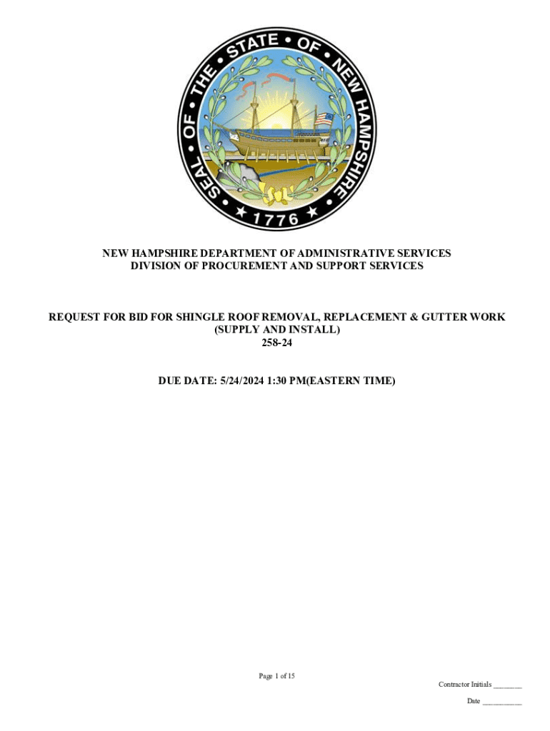DIVISION OF PROCUREMENT AND SUPPORT SERVICESREQUEST FOR BID FOR SHINGLE ROOF REMOVAL, REPLACEMENT & GUTTER WORK