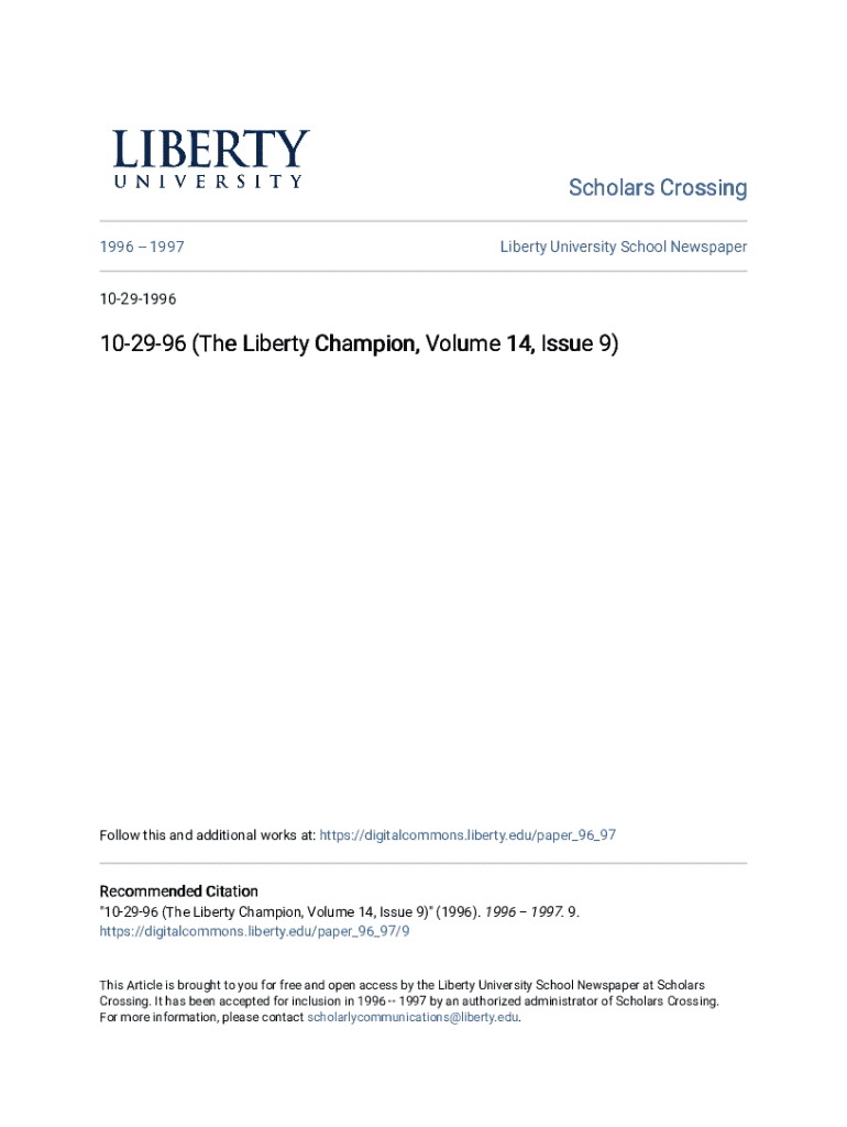 1996 1997Liberty University School Newspaper10291996102996 (The Liberty Champion, Volume 14, Issue 9)Follow this and additional works at: https://digitalcommons.liberty.edu/paper_96_97Recommended