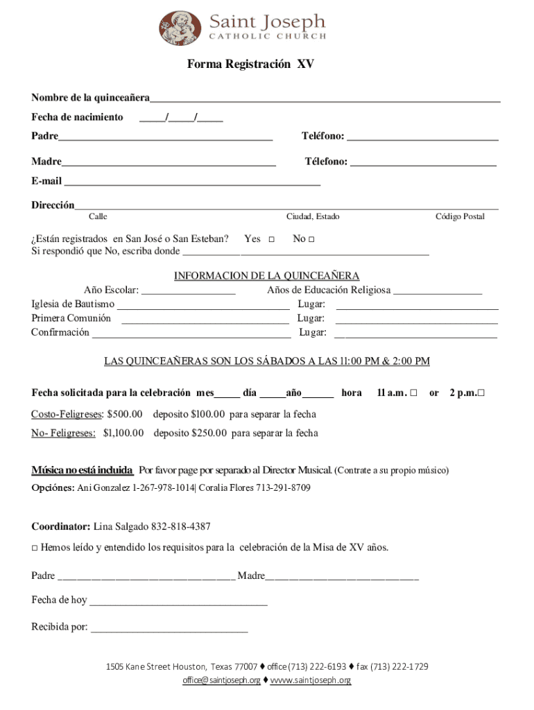 La forma registracin xv se completa proporcionando la información requerida en los campos designados.