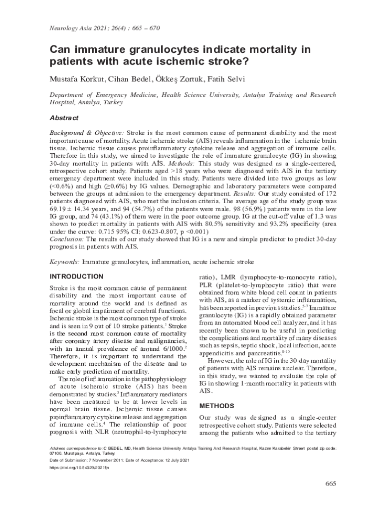 Neurology Asia 2021; 26(4) : 665 670Can immature granulocytes indicate mortality in