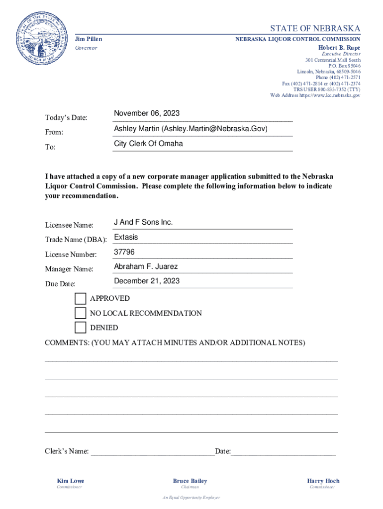 Jim PillenNEBRASKA LIQUOR CONTROL COMMISSIONHobert B. Rule. GovernorExecutive Director
