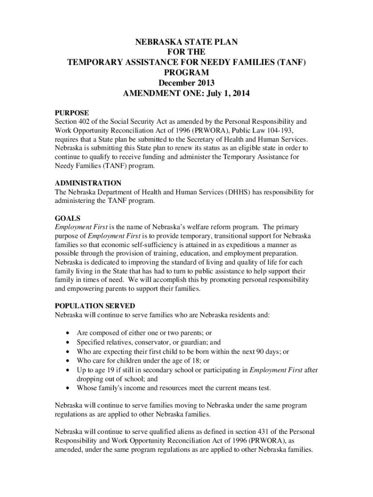 Get the free Nebraska State Plan for the Temporary Assistance for ...