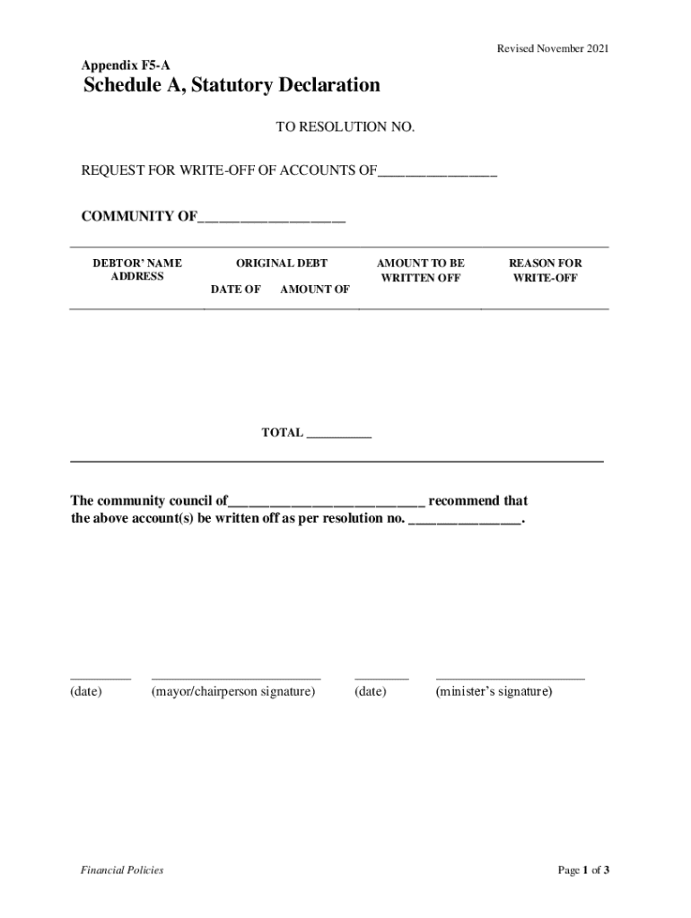 Revised November 2021Appendix F5ASchedule A, Statutory Declaration