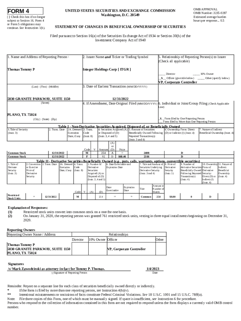 How to fill out Integer Holdings Corp (: 4, Received: 01/04/2023 20:02:00)
