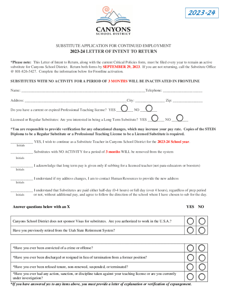 202324SUBSTITUTE APPLICATION FOR CONTINUED EMPLOYMENT202324 LETTER OF INTENT TO RETURN