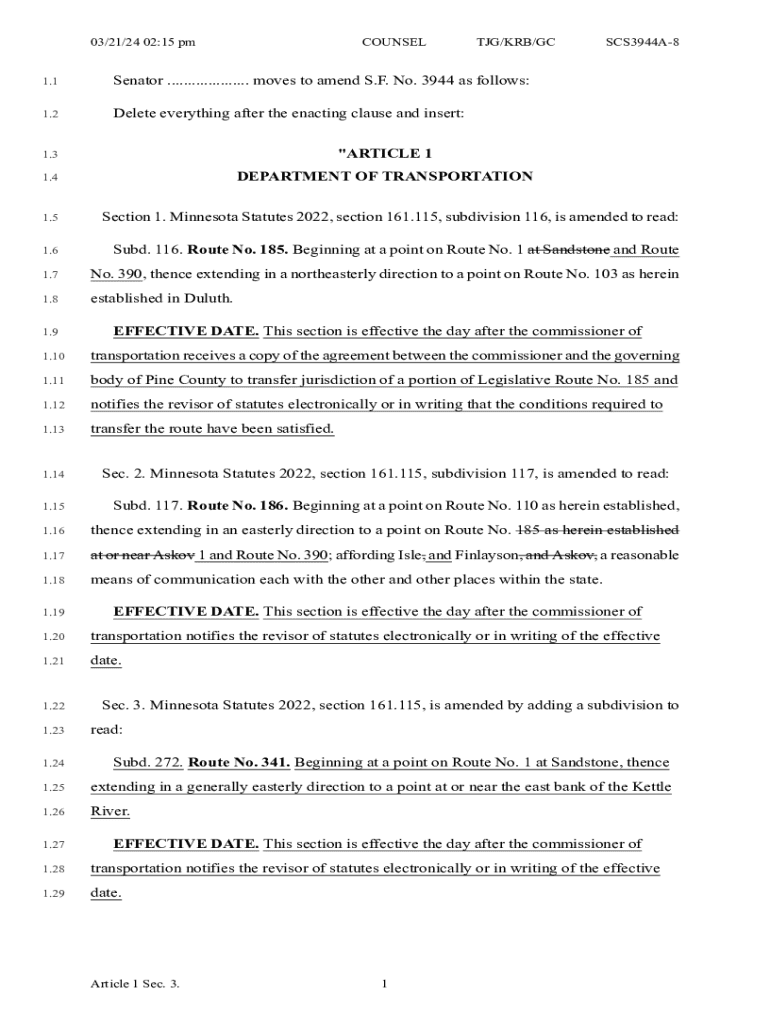 03/21/24 02:15 pm COUNSELING/KGB/GC1.1Senator .................... moves to amend S.F. No. 3944 as follows:1.2Delete everything after the enacting clause and insert:1.3\”ARTICLE 11.4DEPARTMENT OF