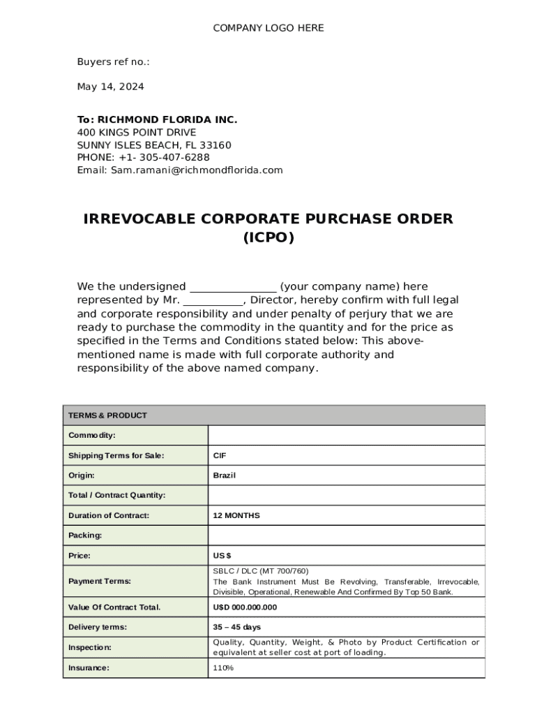 Instructions for the LOI LETTER OF INTENT. International Chamber of Commerce form