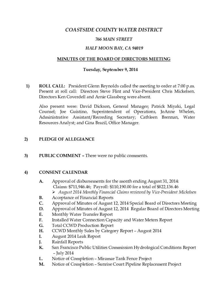 Obtain the necessary paperwork and application form for the Coastside County Water Awarded.
