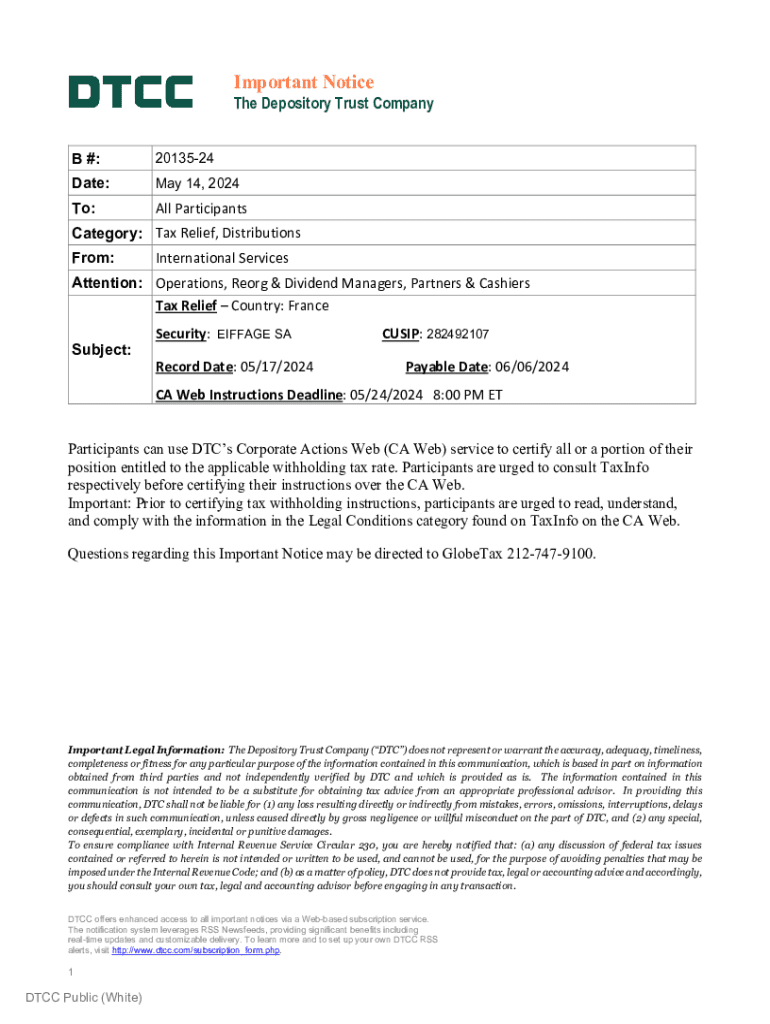 B #:2013524Date:May 14, 2024To:All ParticipantsCategory: Tax Relief, Distributions