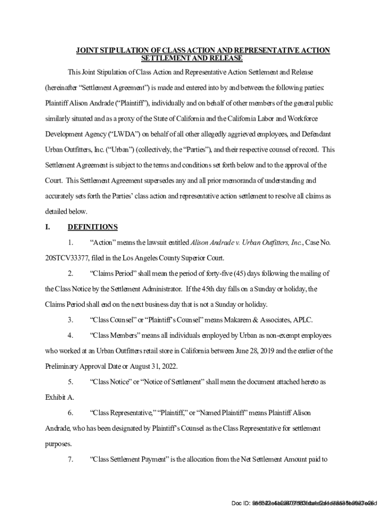 Get the free First Amended Joint Stipulation Settlement Agreement and ...