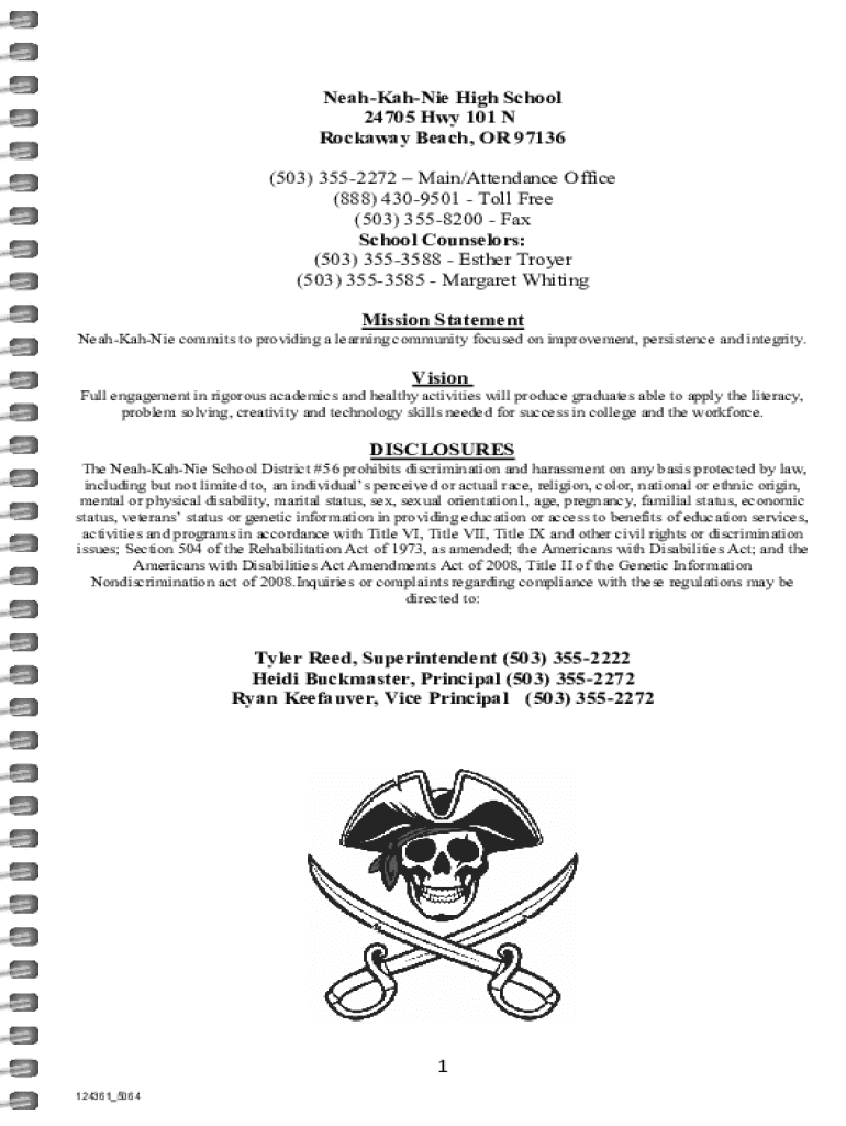 NeahKahNie High School 24705 Hwy 101 N Rockaway Beach, OR 97136 (503) 3552272 Main/Attendance Office (888) 4309501 Toll Free (503) 3558200 Fax School Counselors: (503) 3553588 Esther Troyer (503)