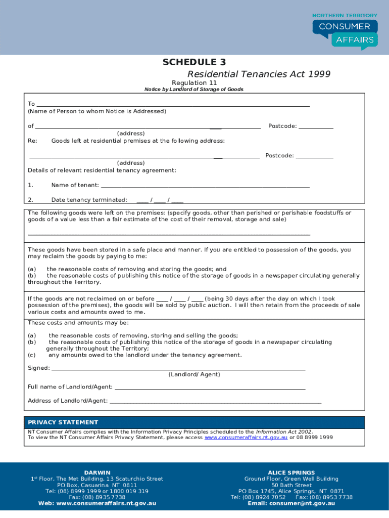Notice of Storage of Goods - nt gov template instructions