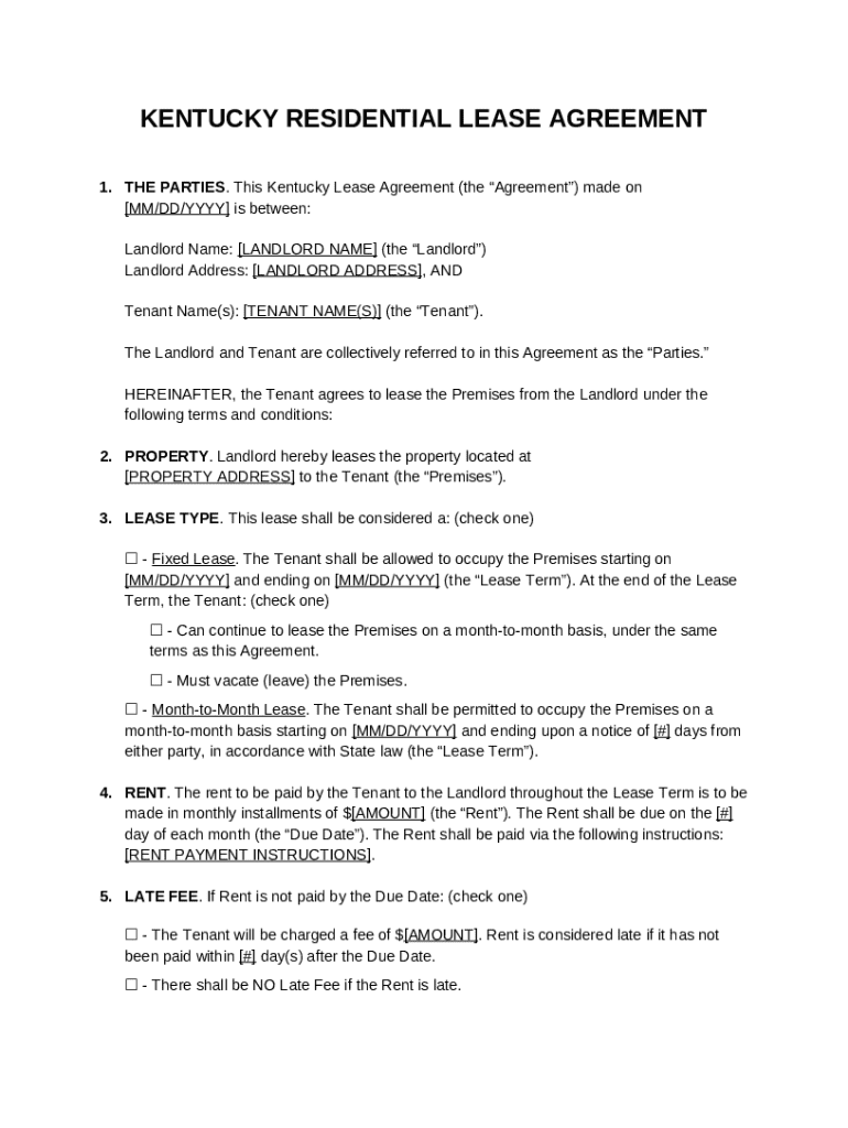 This Kentucky Lease Agreement (the "Agreement") made on MM/DD/YYYY is between: template instructions