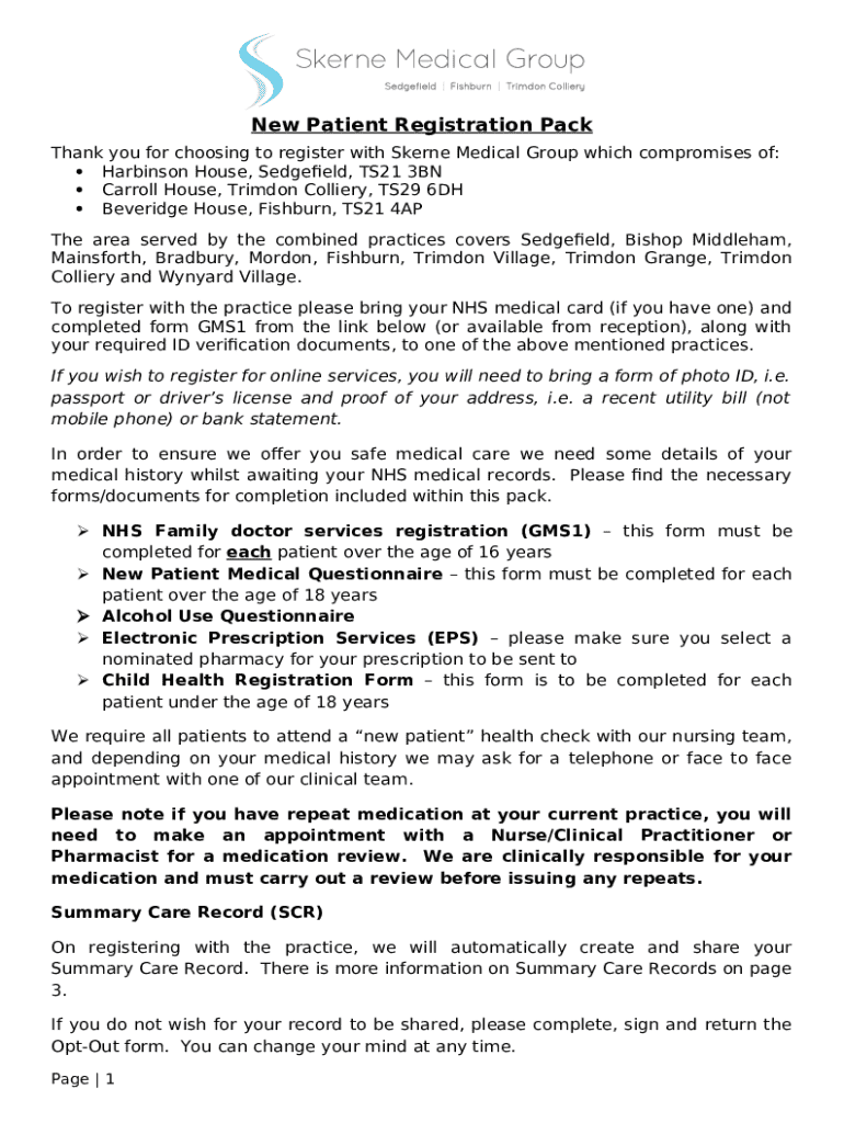 Instructions for the form How to register with this GP surgery - Skerne Medical Group