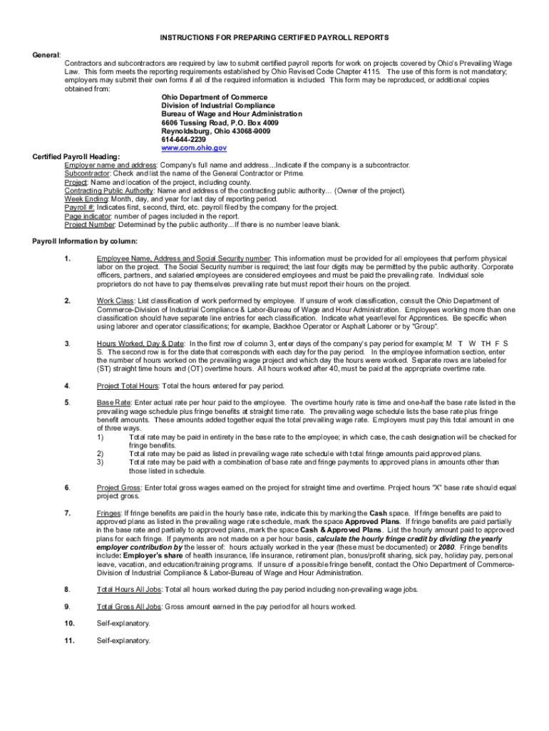 General:Contractors and subcontractors are required by law to submit certified payroll reports for work on projects covered by Ohio's Prevailing