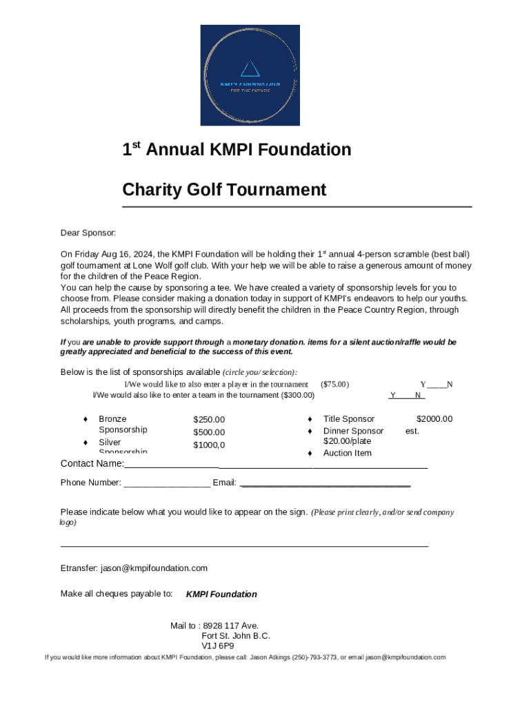 Instructions for the form Golf Tournament Sponsorship throughout Golf Tournament Sponsors