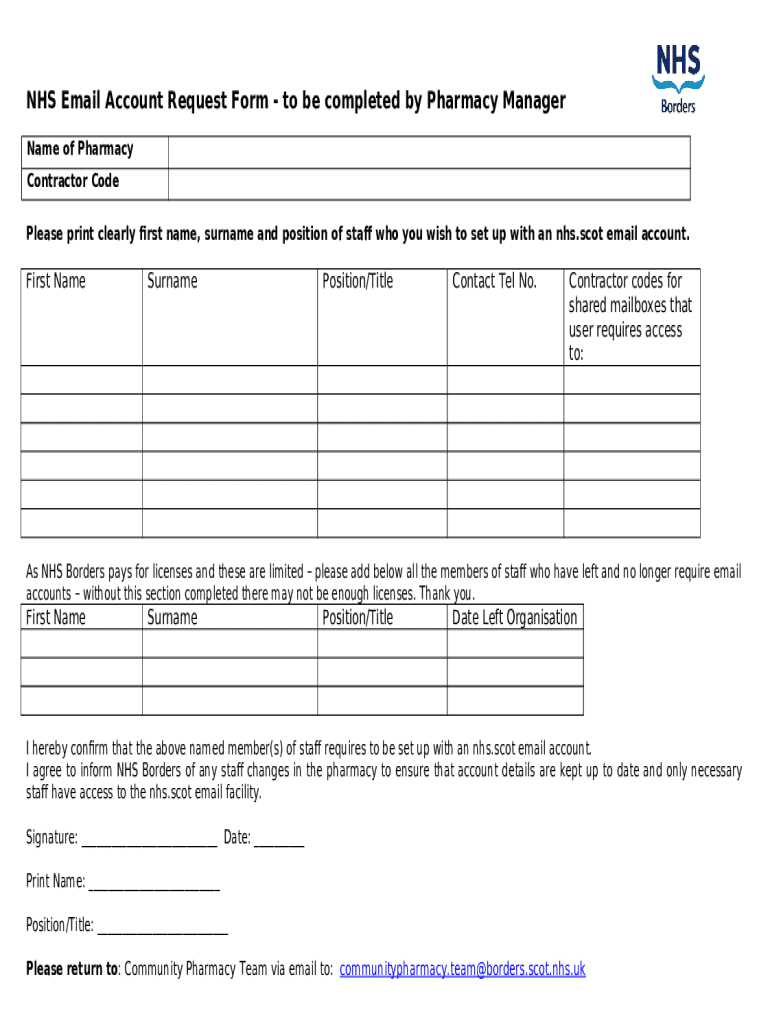 What is Email Account Request - NHS Borders Form?