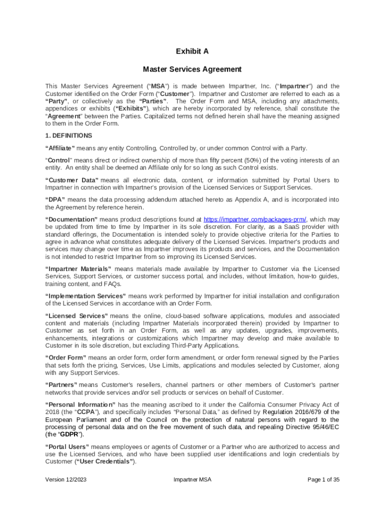 Instructions for the Legal Master Services AgreementImpartner PRM form