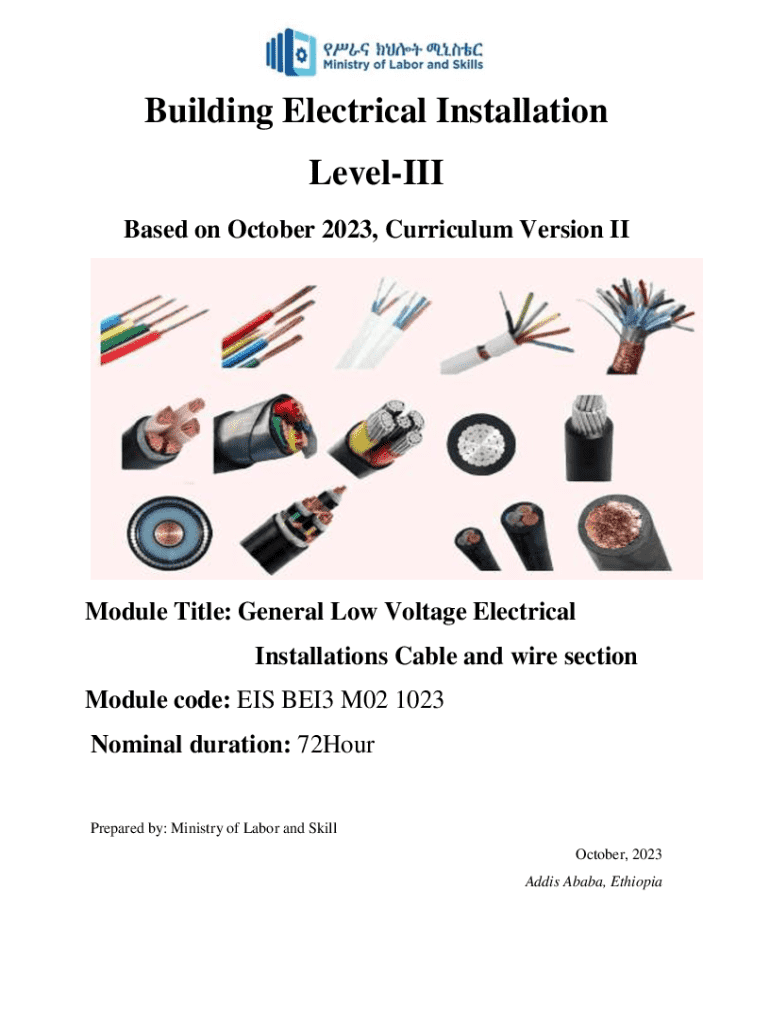 Building Electrical Installation LevelIII Based on October 2023, Curriculum Version IIModule Title: General Low Voltage Electrical Installations Cable and wire section Module code: EIS BEI3 M02 1023