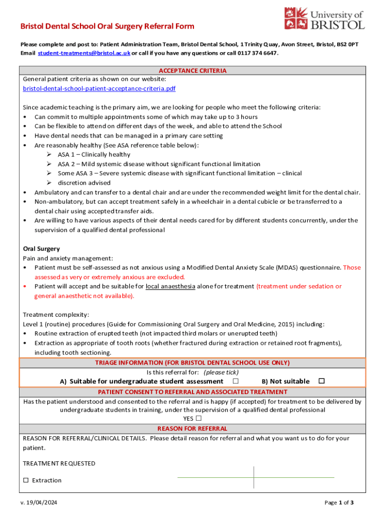 Bristol Dental School Oral Surgery Referral Form