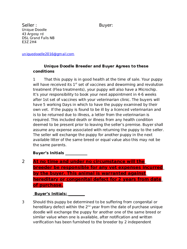 Instructions for the Breeder Agreement & Health Warranty - The Doodle form
