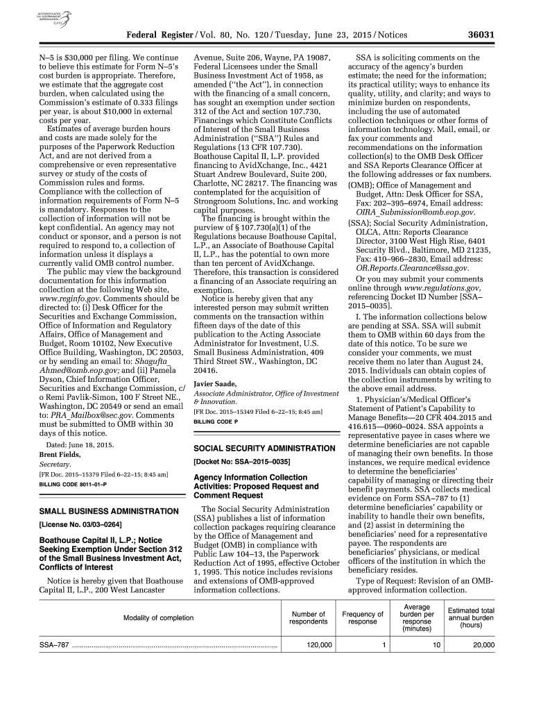 36031 Federal Register / Vol. 80, No. 120 / Tuesday, June 23, 2015 / Notices N5 is $30,000 per filing. We continue to believe this estimate for Form N5s cost burden is appropriate. Therefore, we estimate