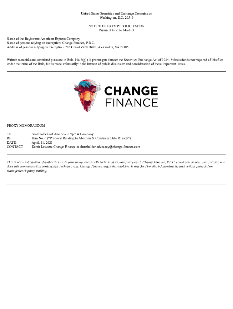 Get the free Notice of exempt solicitation submitted by non-management