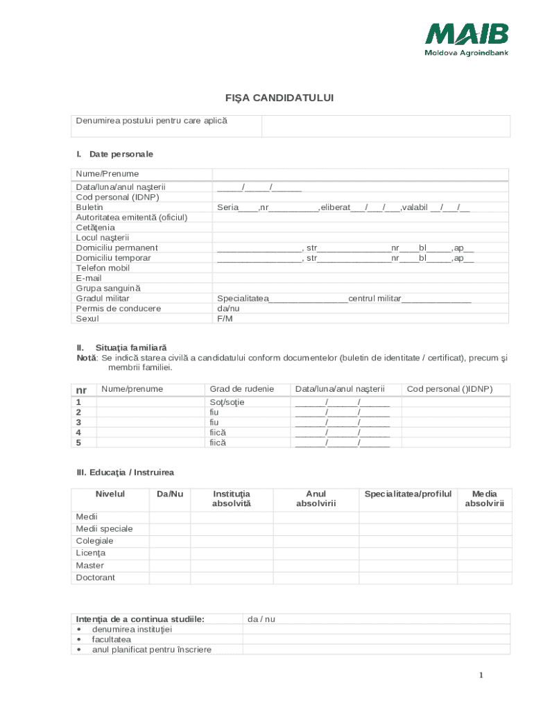 What is maib: leader in the banking sector of the Republic of Moldova Form?