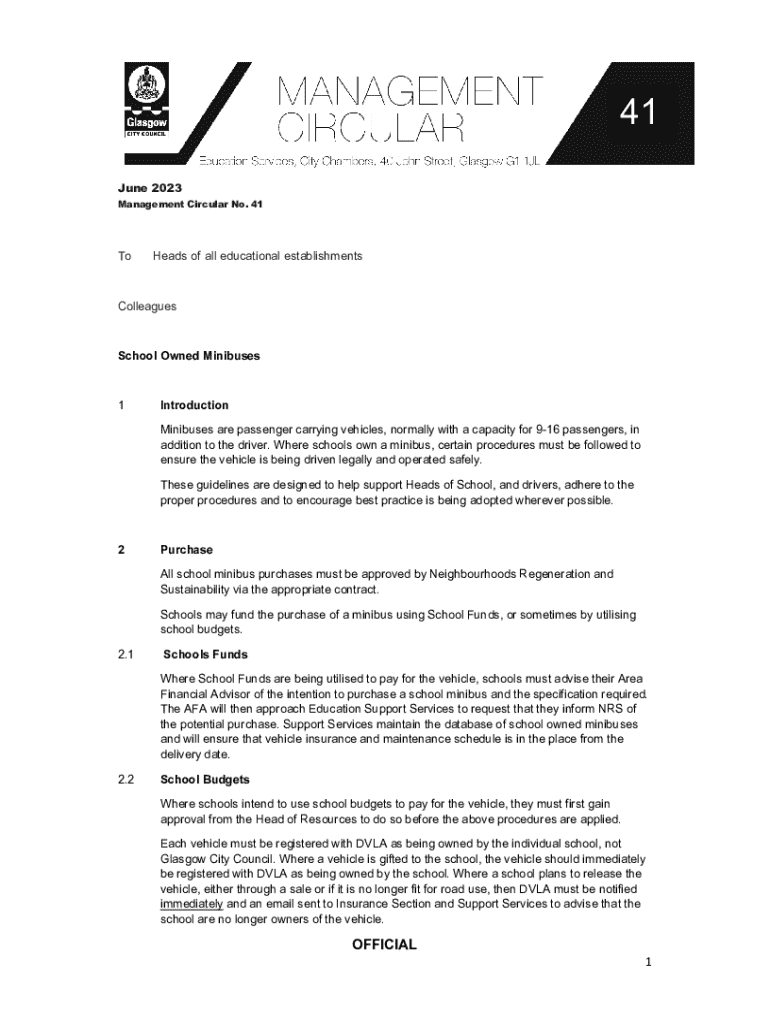 OFFICIAL41 June 2023 Management Circular No. 41ToHeads of all educational establishmentsColleaguesSchool Owned Minibuses1Introduction Minibuses are passenger carrying vehicles, normally with a capacity