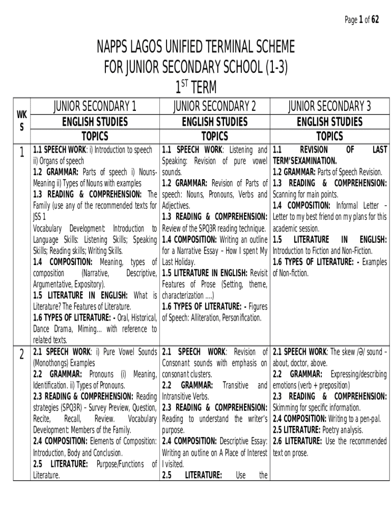 How to fill English Studies Junior Secondary School (Jss 3) First Term word template