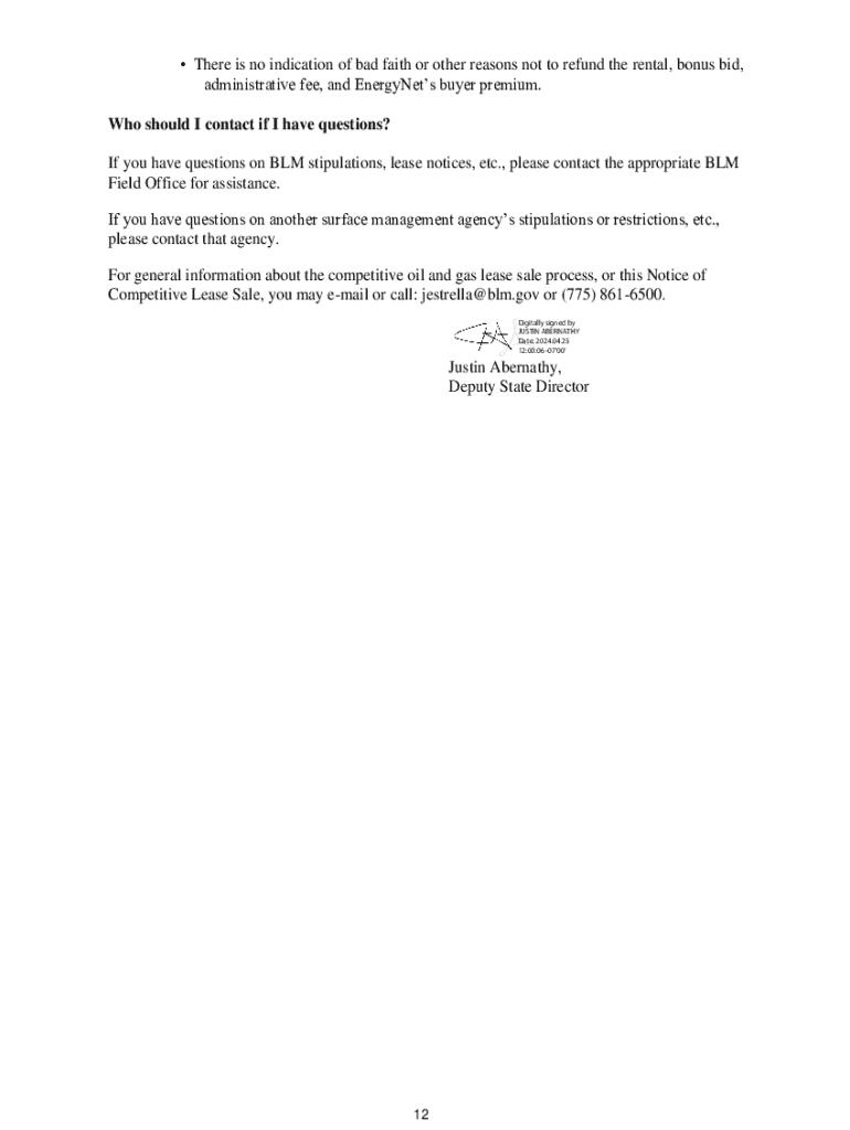 United States Department of the Interior BUREAU OF LAND MANAGEMENT Nevada State Office 1340 Financial Boulevard Reno, NV 895027147 www.blm.govApril 26, 2024Notice of Competitive Oil and Gas Internet
