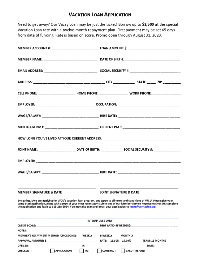 VACATION LOAN APPLICATION