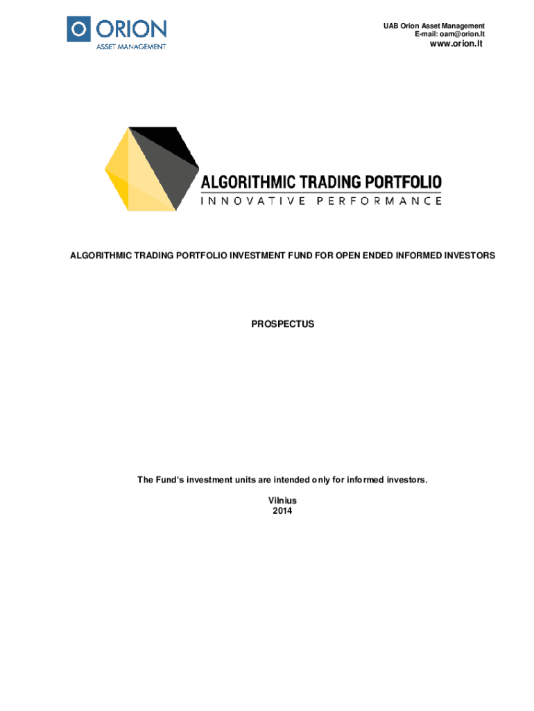 UAB Orion Asset Management Email: oam@orion.ltwww.orion.ltATVIROJO TIPO INFORMUOTIESIEMS INVESTUOTOJAMS SKIRTO INVESTICINIO FONDO ALGORITHMIC TRADING PORTFOLIO INVESTMENT FUND FOR OPEN ENDED INFORMED