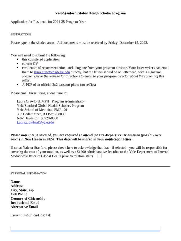 How to fill Apply to the Yale/Stanford Global Health Scholars Program - medicine yale word template
