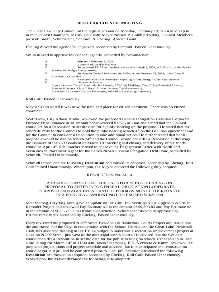 Template North Liberty City Council Regular Session May 14, 2024 instructions