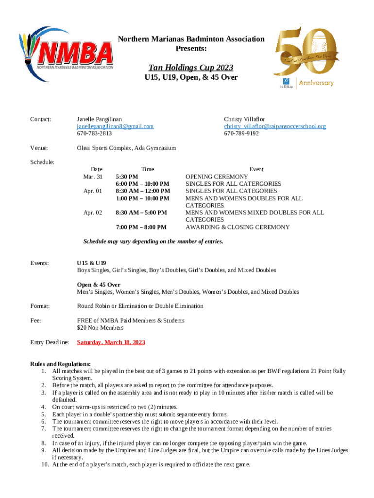 What is Northern Marianas Badminton Association Shine Bright On ... Form?