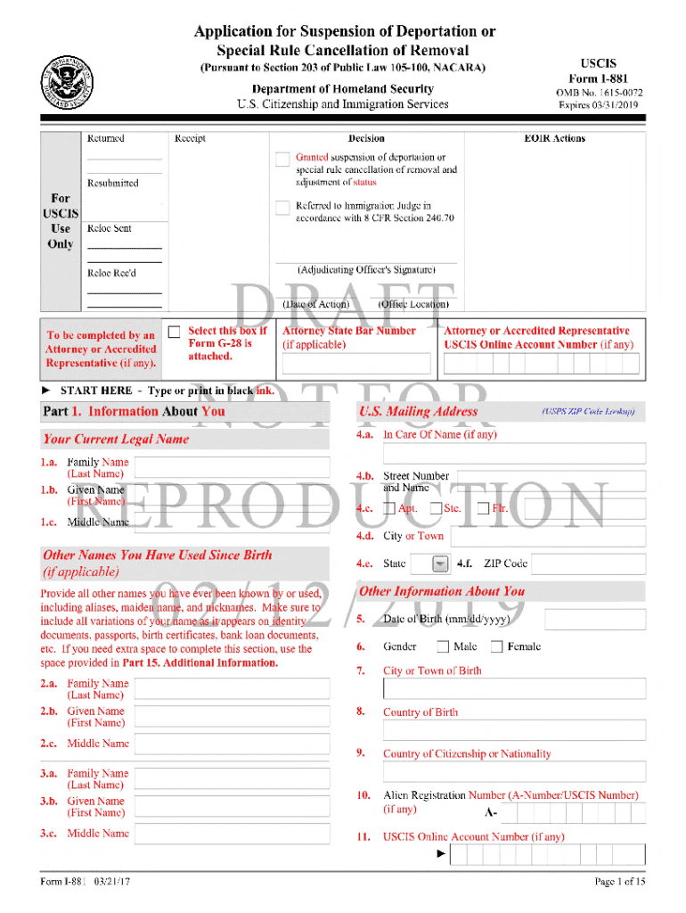 Get the free Application for Suspension of Deportation or