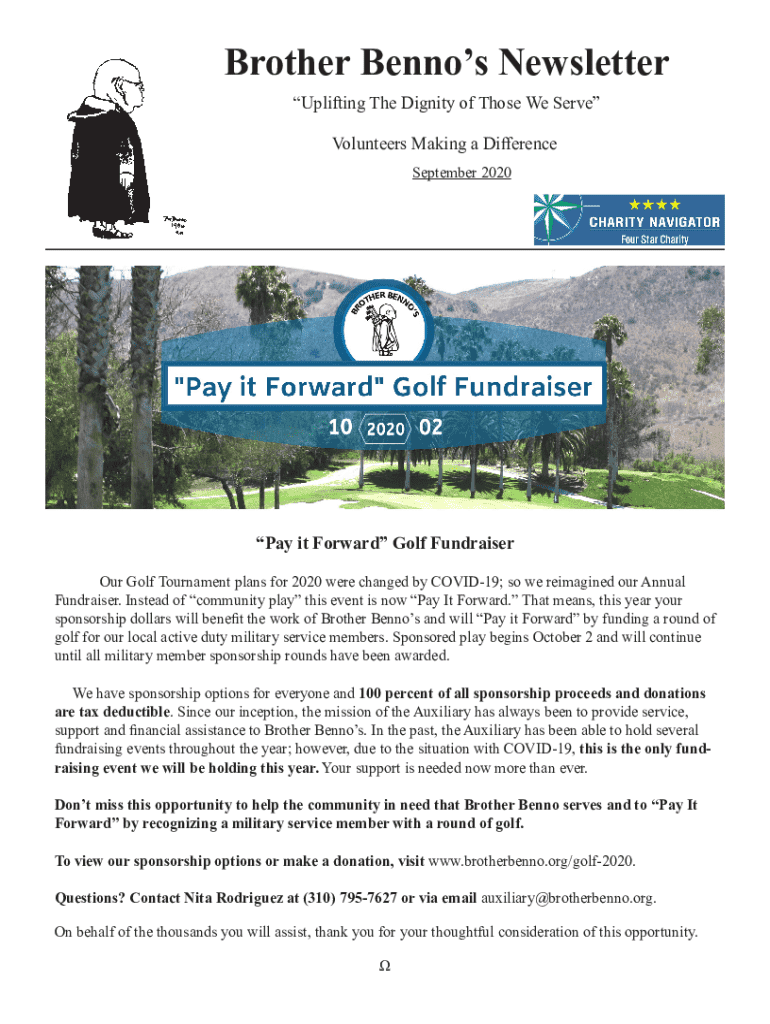 Get the free Brother Benno's begins 'pay it forward' golf fundraiser