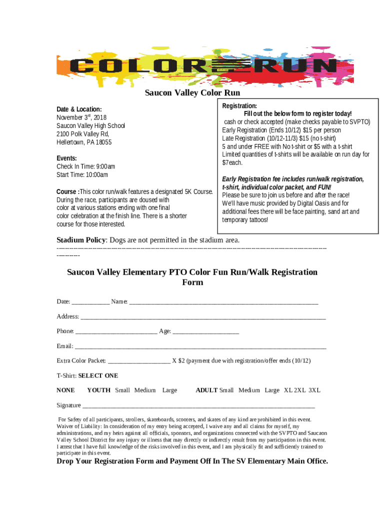 What is Register Early for Nov. 5 Saucon Valley Color Run Form?
