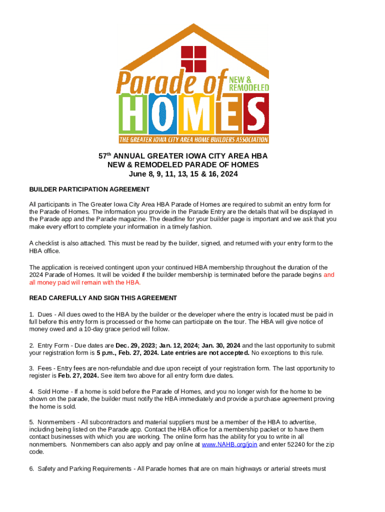 The Builder Participation Agreement is a writable document that should be submitted to the specific address to provide some info. It needs to be filled-out and signed, which can be done in hard copy, or with the help of a particular software such as PDFfiller. It helps to fill out any PDF or Word document directly from your browser (no software requred), customize it according to your needs and put a legally-binding electronic signature. Right away after completion, the user can easily send the Builder Participation Agreement to the appropriate individual, or multiple ones via email or fax. The template is printable as well due to PDFfiller feature and options presented for printing out adjustment. Both in digital and in hard copy, your form will have a clean and professional look. Also you can turn it into a template for later, there's no need to create a new file over and over. You need just to amend the ready template.