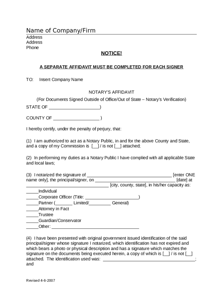 What is NOTARY PUBLIC-AFFIDAVIT-DOCUMENTS SIGNED OUTSIDE OFFICE-OUT OF STATE. Notary Public Form?