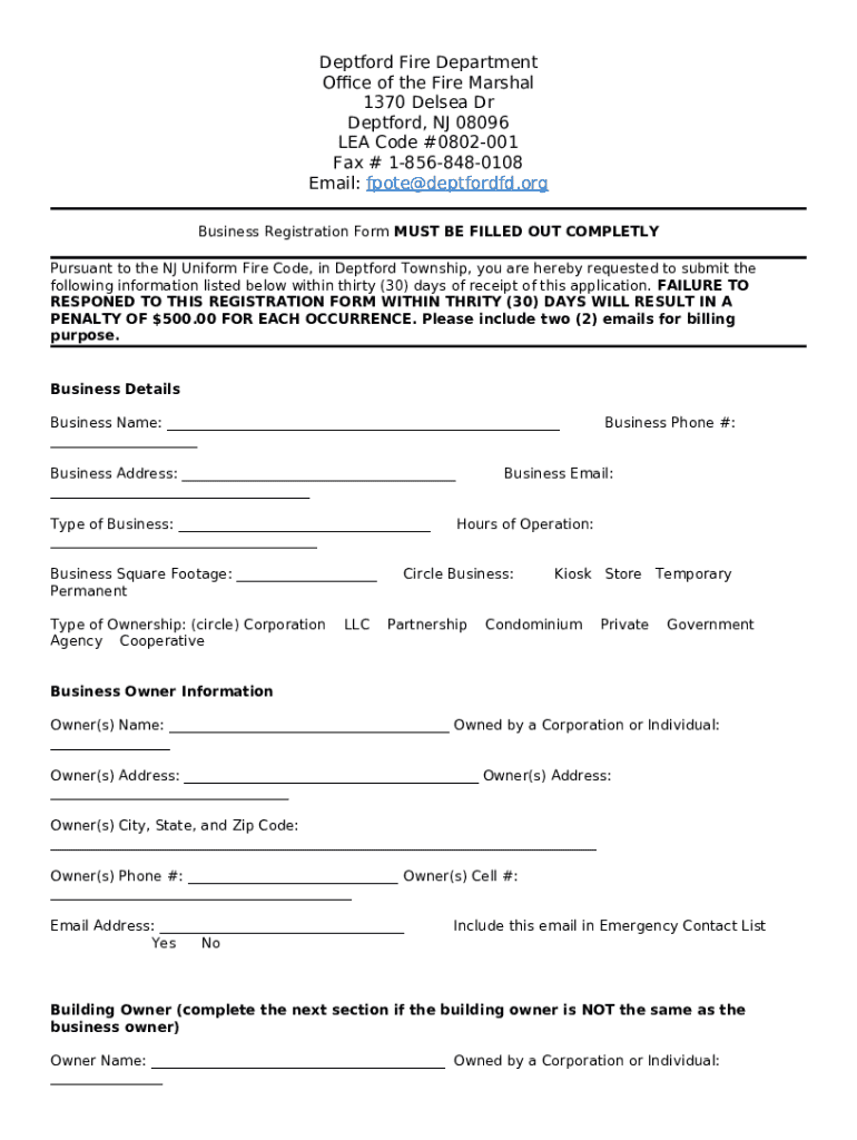 What is Business InationDeptford Township Fire Department Form?