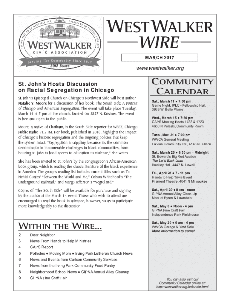 St. Johns Episcopal Church on Chicago's Northwest Side will host author