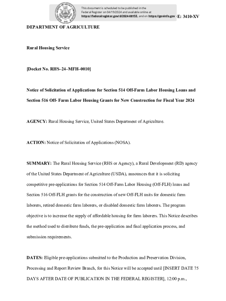 This document is scheduled to be published in the Federal Register on 04/19/2024 and available online at https://federalregister.gov/d/202408155, and on https://govinfo.govBILLING CODE: 3410XVDEPARTMENT