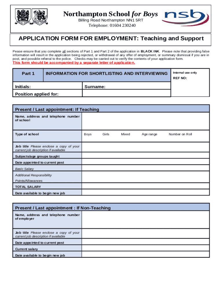 What is APPLICATION FOR EMPLOYMENT: Teaching and Support Form?